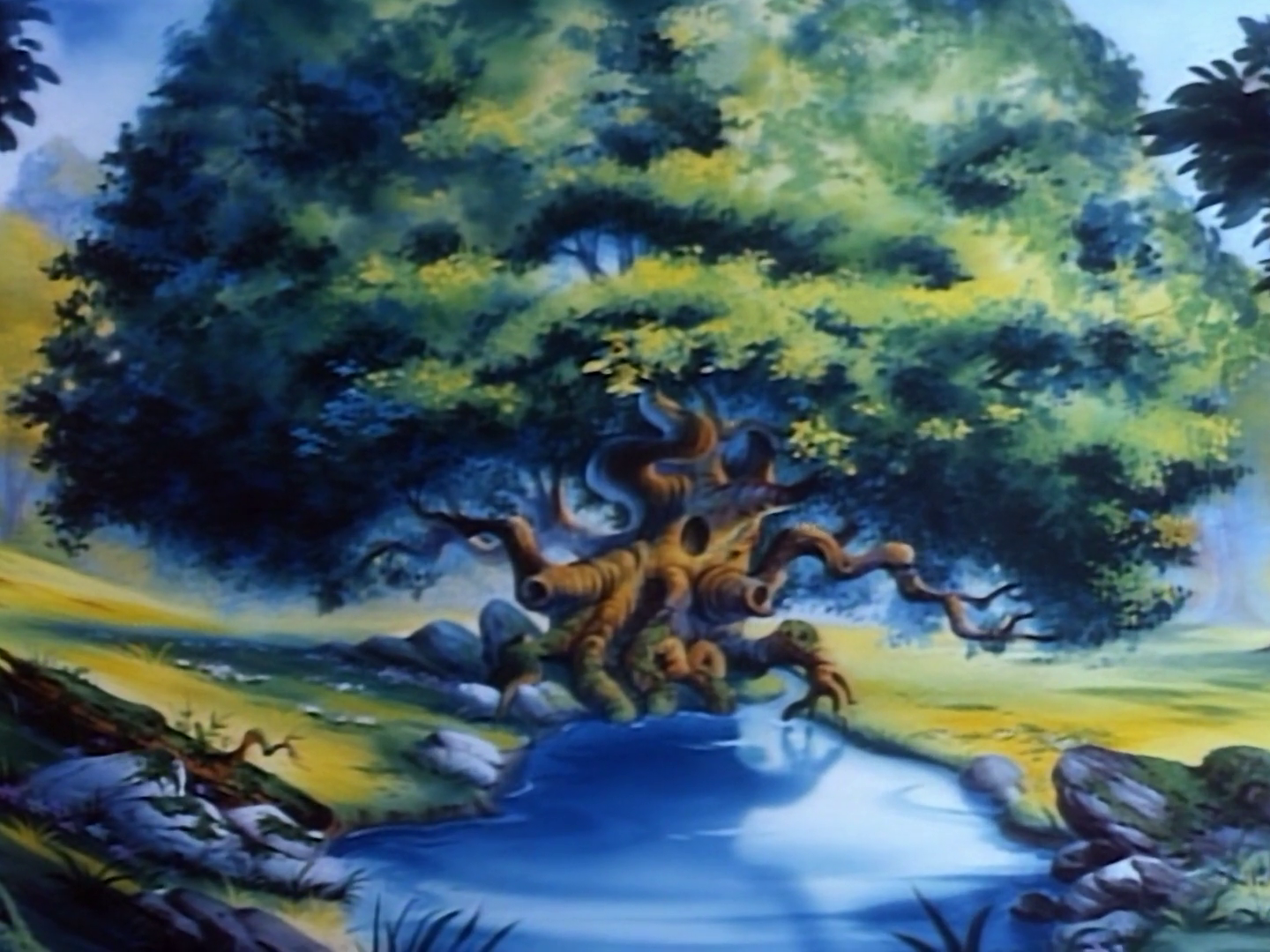 The core of Gummi Glen is built beneath and within a great hollow tree, its extensive interior carved out and engineered by the ancient gummies who once populated it. The glen is filled with secret passages, rooms, and tunnels left behind and forgotten by the ancient gummies, but later rediscovered by the modern residents. Though most of the Glen is uncharted and locked off for different reasons. From the outside, the Glen is hidden and unremarkable, a feature of deliberate ancient design, as the gummies of the era lived in secrecy from the humans who had once driven their kind away.